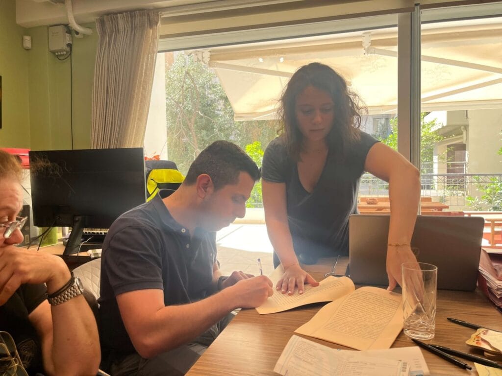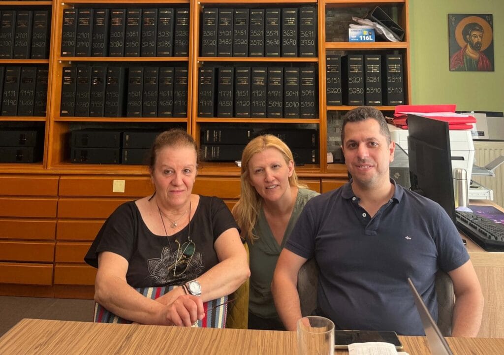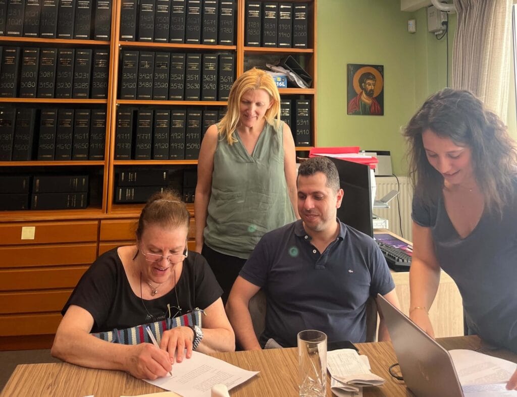 Στις φωτογραφίες η κορυφαία μεσίτριά μας Φωτεινή Παπαχατζή, στο γραφείο της συμβολαιογράφου, μαζί με την πωλήτρια και τον αγοραστή κατά την υπογραφή των συμβολαίων.